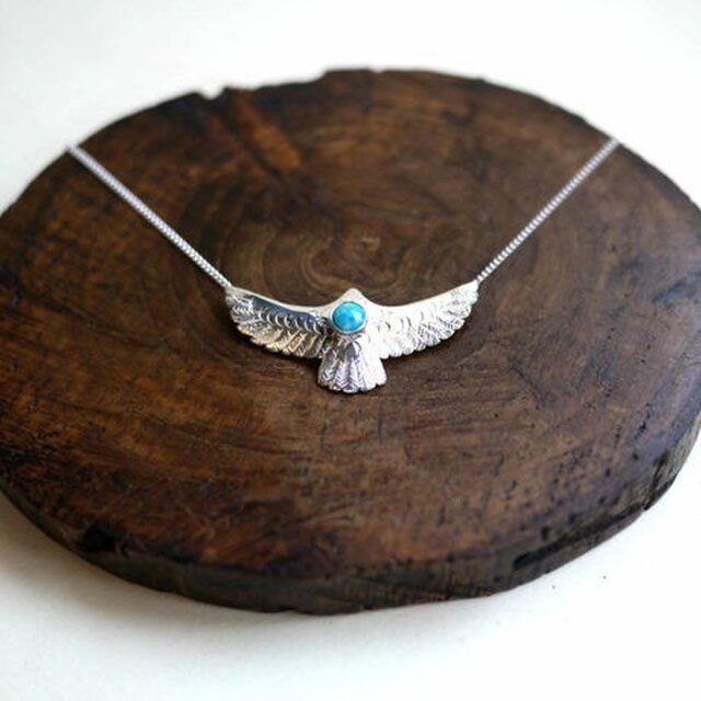 工具(タガネ)を使い翼の柄を一点一点打ち込んで仕上げたイーグルのネックレスです。