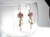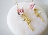 ◆◇薔薇とスワロフスキードロップ型ビーズの揺れるピアス◇◆
