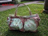 日本人イラストレーターで、バリ島でバティック(ろうけつ染め)を作っている方の生地を使用し、「mari sini」オリジナル、世界に一つだけのバッグが出来上がりました。