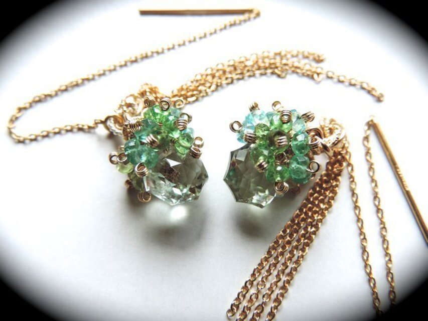 ~ K14GFグリーンアメジスト8面スターカット&フリンジピアス ~