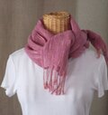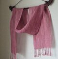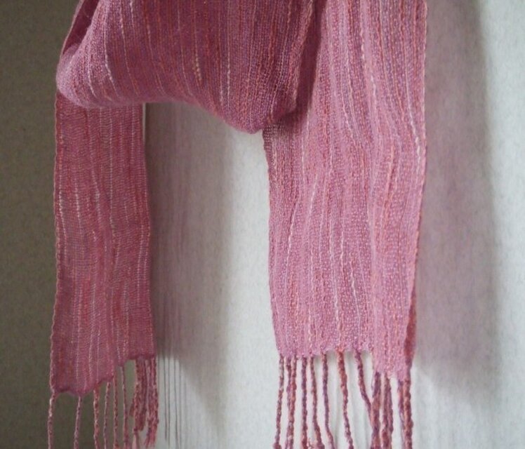ピンクのアイリッシュリネンとコットンスラブの段染め糸を合わせて織りました。