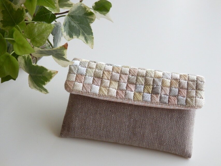 隣り合う色や刺す方向を少しずつ変えていますので、動くと色味が違って見えます。