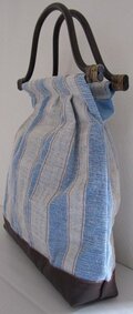 麻のカヤ織り生地を縦に重ね縫いした、涼し気なバッグです。
