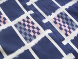 濃いめの青に格子がらのしっかりとした正絹の地、細かいしぼがあります。