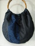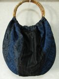 六種類の大島紬をパッチしてバルーンバッグに仕立てました。
