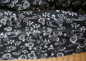 濃いチャコールグレイに白抜きされた流水に小菊柄の浴衣生地で、着心地楽ちんのゴムスカートを作りました。