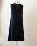 紺色に白の模様の着物からAラインのワンピースを作りました。
