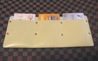 サイズは約縦12センチ、上辺20センチ、下辺21センチ と大きいので、お札はもちろん通帳や薬手帳などでも余裕で入ります。
