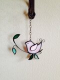 かわいいピンクの小鳥が枝にとまっている飾りです。サンキャッチャーとして窓辺に、またお部屋の壁にいかがですか♪