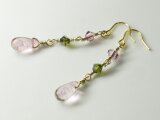 チェコ・ドロップとスワロのロングピアス 桜葉