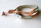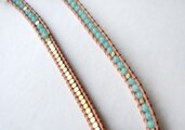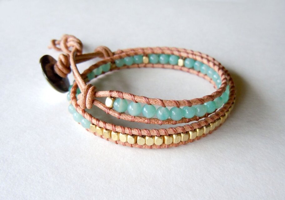 マットな金色の四角いメタルビーズを使った二連のラップブレスレットです。