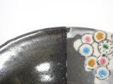 長石釉と天目釉を半分ずつ掛け分けて、色絵を施したお鉢です。
