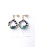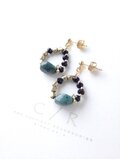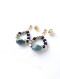 天然石モスアゲートをポイントにカットが施されたブラックガラスビーズをゴールドパーツで組み合わせたピアス☆