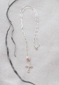 パールのネックレスやシルバーのネックレスとの重ねづけをしてみたり、1点でオフの時間のお散歩に着けて、お出掛け下さい。時間の流れとともにシルバー925は落ち着いた色になって、「いつも一緒」の存在になれることでしょう。クロスモチーフは33mm×21mm×2mm。パールは⌀7mm。LeJ では、天然石をふんだんに使ったアクセサリーもたくさん作りますけれど、お手持ちのアクセサリーと仲良くなれるアクセサリーも作ってゆきたいと思っています。 LeJ のもの同士、お手持ちのアクセサリーとのレイヤードの楽しみを。優しい気持ちでいられるアクセサリー、ちょっと疲れたときに、ふと手に取りたくなるアクセサリーです。長さは84cm。ご希望により調整致します。