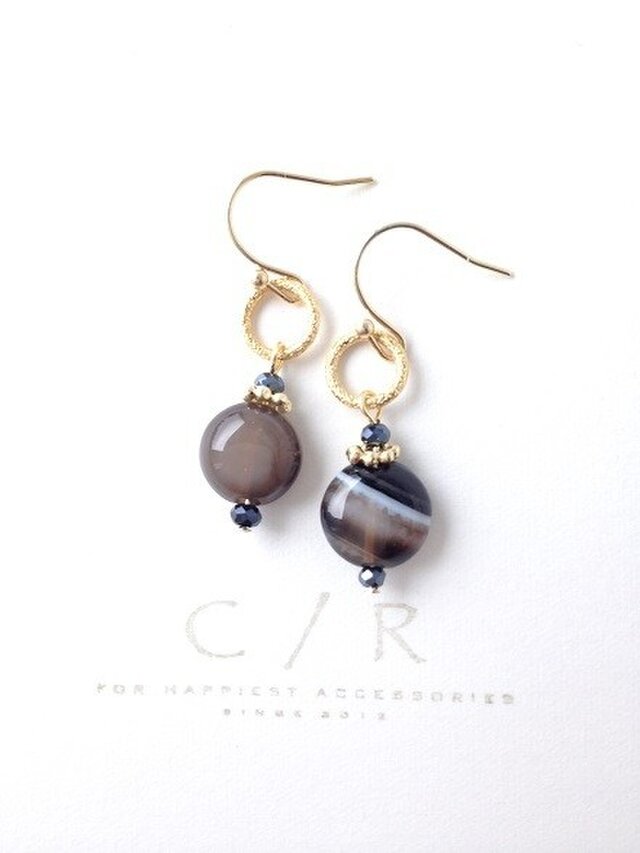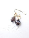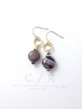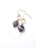 小惑星のような縞模様が魅力的なブラックサード二クスをゴールドのパーツと組み合わせたショートピアス。
