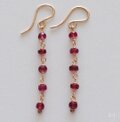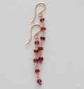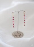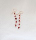 濃厚なクランベリージュースのようないろの、ピンクトルマリン、5粒でピアスにしました。あまいような大人っぽいような、くっきりした色が独特な存在感を持つアクセサリー。シルクのブラウスにも、インディゴブルーのシャツにも合うクラス感。ピアスホールからの長さ50mm。