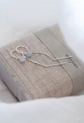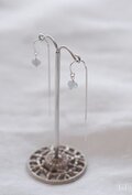 ほんの少しのペールブルーをまぜた、みずみずしい透明感溢れるブルーグレイのハイクオリティサファイア。チェーンピアスにすると、さりげないなかに、きらきらと硬質的な輝きを放ちます。サファイアは⌀5mm×4mm。ピアスホールからバーの先までの長さ60mm。スネークチェーンのような、しっかりした作りのピアスパーツです。