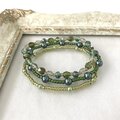 #ゴムブレス #チェコガラス #キラキラ #上品 #エレガント #3本セット #きらきら #ビーズアクセサリー #ビーズブレスレット #パーティー #緑 #クリア #透明感 #輝き #3セット #グラデーション #シードビーズ #ビーズ #誕生日 #ゴム #グリーン #エメラルド #クラシカル #クラシック #シック #重ね付け