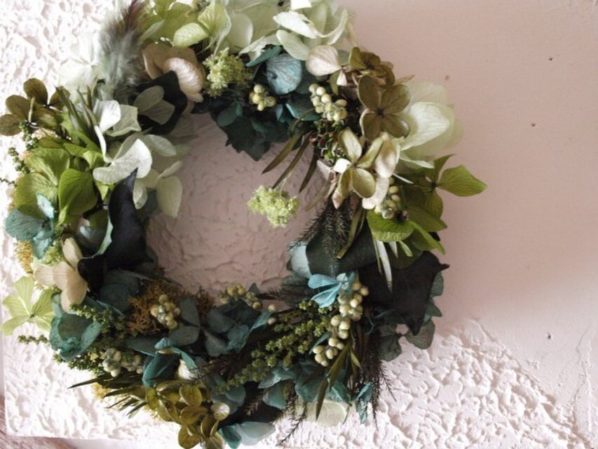 グリーンのリースは季節を選ばず、一年中飾っていただけるかと思います。