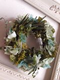 ちょっぴり黄色いお花の入ったグリーンのリースは、飾るだけで元気になりそう♪