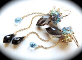 ~ K14GFミディアムライトスモーキークォーツ&マルチストーンピアス ~
