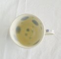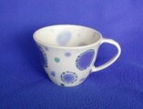 真っ白で粒子の細かい半磁土の少し大きめのカップにコバルトで大きな水玉紋を・・・