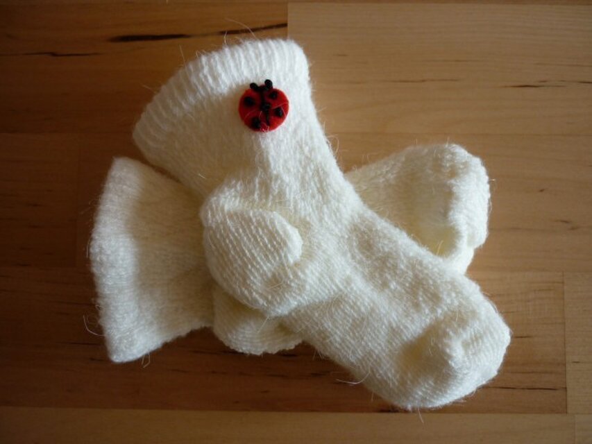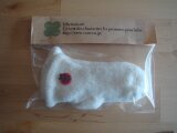 てんとう虫の刺繍がしてある、生後から3~4才くらまではける「のびのび靴下」です。