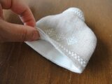 こぎん刺しの糸をクッキリと浮き上がらせる為、及び、使用中の洗濯による縮みを防ぐ為、
