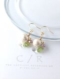 爽やかなイエローグリーンが美しいペリドット、しずく型のチェコ製ビーズを組み合わせたショートピアスです☆