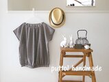 薄手のコットンのドットプリントで作ったフレンチスリーブのプルオーバーです。