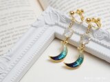 ブルーグラデーションの月が耳元でゆれるイヤリングです。