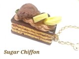 バナナとアイスクリームを盛り付けた美味しそうなミルフィーユのバックチャームです。