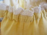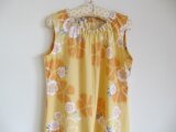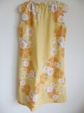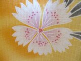 ゆかたをほどいて作りました。ゆかたにしては珍しい、黄色となでしこ柄が上品な印象を与えます。