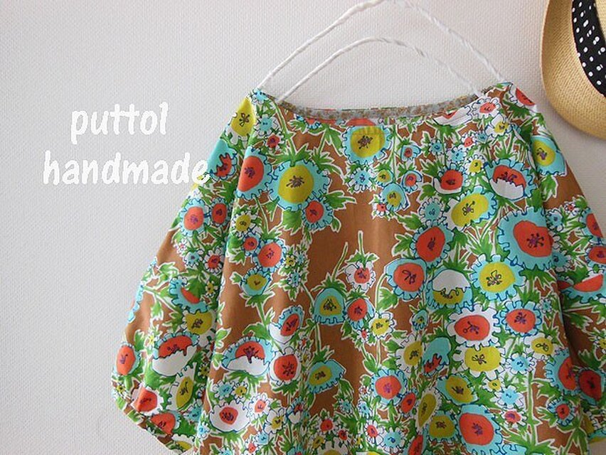 大きな花柄がオシャレなコットンプリントのパフスリーブのプルオーバーシャツです。