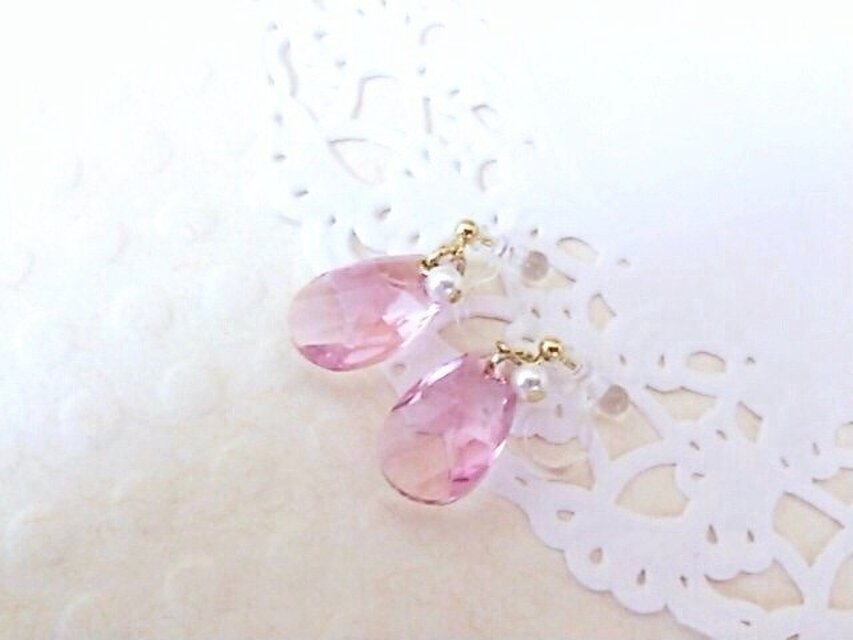大人っぽいピンクのスワロフスキーで耳元が華やかになります。