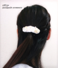 ボタンを思うがままに縫い付けた、ナチュラルな印象のバレッタです。