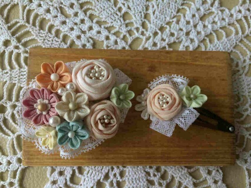 コサージュとあわせても使えるようにオーダーしました。何度も希望や相談を丁寧に受けていただき、希望以上の品の良いブローチが届きました。Hanairo様のお人柄が分かる作品です。子どもが成人する時、またお願いしたいと思っています。
