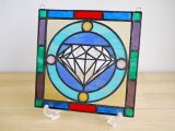 ダイヤモンドモチーフのステンドグラス ミニパネルです。