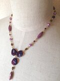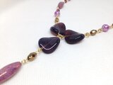 種類の異なるパープル系のビーズを配置したネックレスです。
