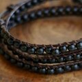 ビーズと合皮で編み上げた、ナチュラルなスタイルのブレスレットです。