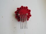つまみ細工 ヘアゴム鮮やかな紅色のつまみ細工、とてもきれいです。特に冬には映えますね。もう一回り大きく、かつゴムが太いとよりいいかなと思いました。毎日使っています。ありがとうございました。