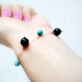 華奢なチェーン、オニキスとターコイズがぽろんぽろんと揺れる表情が愛らしいブレスレットです^^