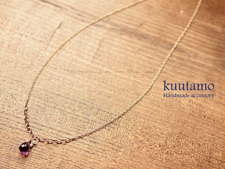シンプルなしずく型のアメジストを使ったネックレスです。