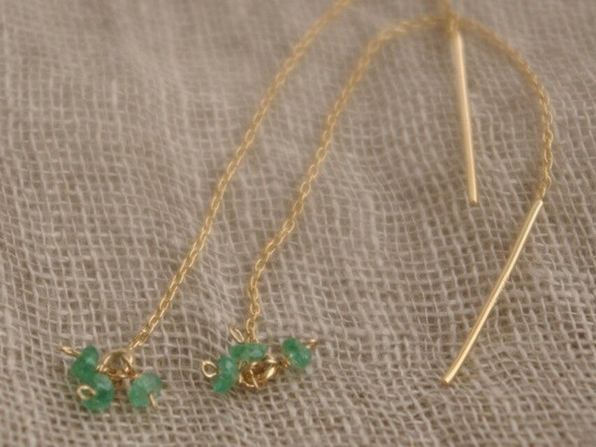 美しい色をしたエメラルドを使ったアメリカンピアスです。