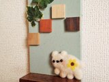 木材で制作した壁に掛けるキーフックに、羊毛の白くまを飾りました☆