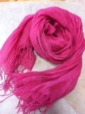 リネンの未精練の生成りと精練済の白に紅花染めがパッと冴え、よく見ると派手、地味・・・