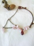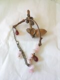 ピンクオパールと真っ赤なガラスのビーズ、茶色のナイロンコード