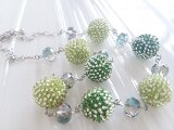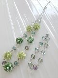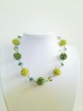 グリーン系のカットガラスとビーズボールを合わせたネックレス、