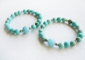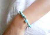 青空のような水色のクォーツァイトをポイントにした夏色ブレスレットです!