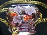 花や金魚は表面に描いたのではなく、ひとつずつパーツを作り、溶かしたガラスに埋め込みながら制作しております。
